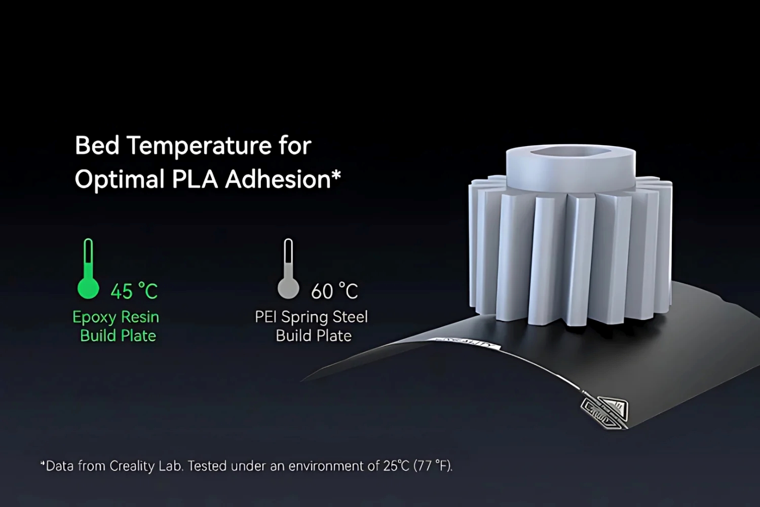 Il nécessite une température plus basse pour assurer l’adhérence, ce qui améliore l’efficacité énergétique globale. Ce nouveau plateau est également flexible, vous permettant de détacher facilement vos impressions terminées.