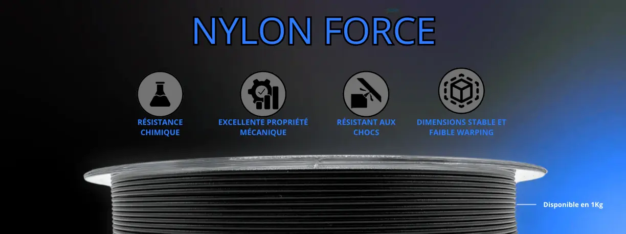 Le TECH Force 6 est un filament en polyamide 6 composé à 30 % de fibres de verre et de fibres de carbone. Les charges de ce filament ont la particularité de bloquer le retrait entraîné par les polyamides lors de l’impression.