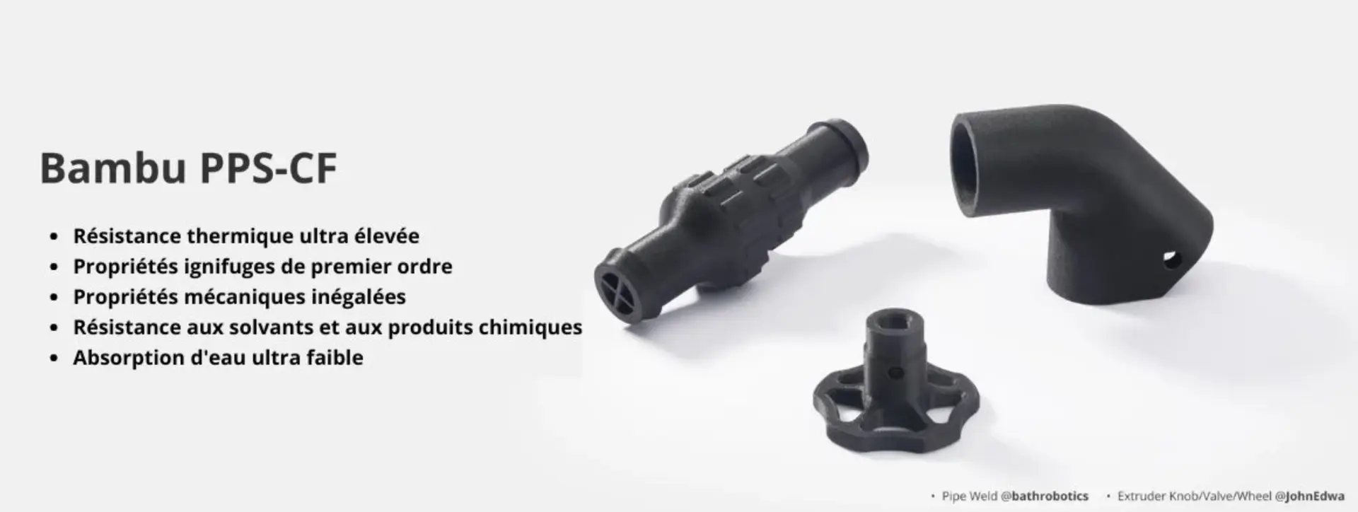 Le PPS-CF, c'est l'alliance parfaite entre la rigidité des polymères PPS et la solidité de la fibre de carbone. Ainsi, c'est un matériau hyper rigide, avec une excellente résistance à la flexion et à la traction. De plus, il est très stable et ne se déforme pas, ce qui garantit que les grandes impressions restent précises du début à la fin.