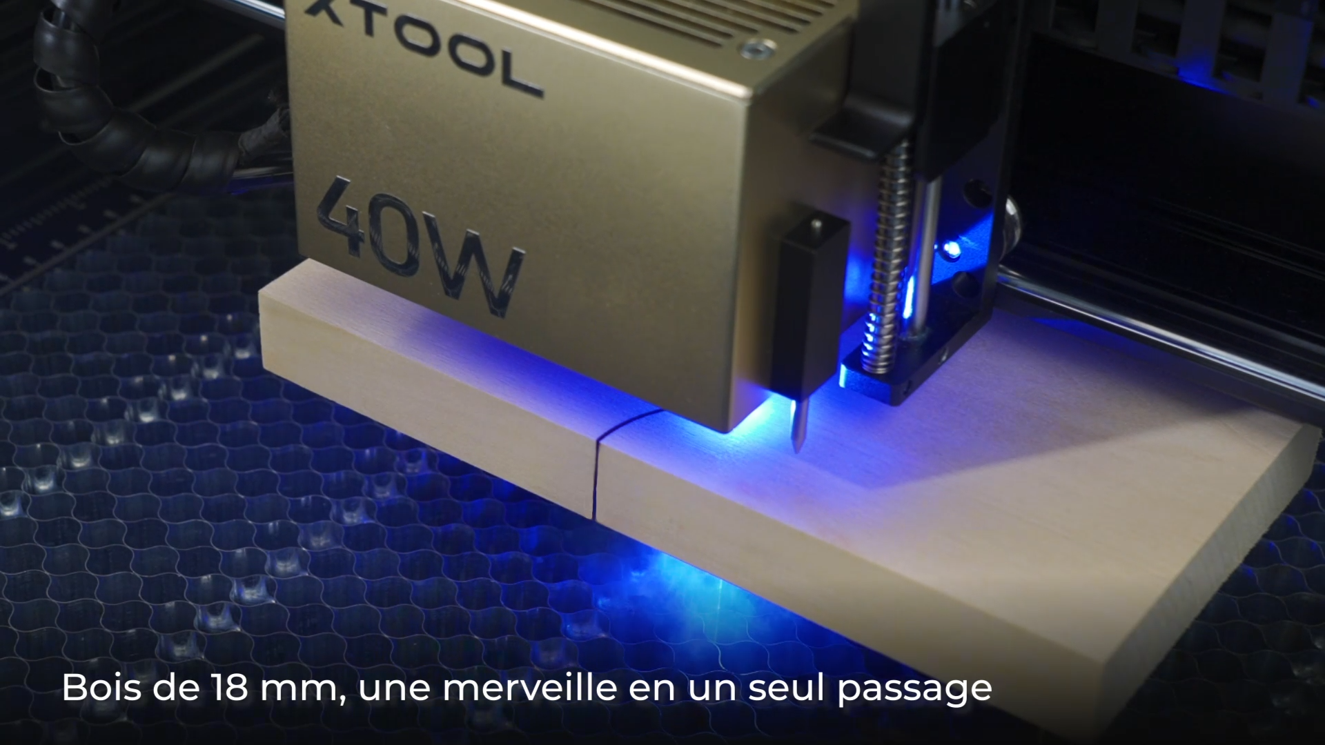 Grâce à sa technologie avancée de compression, le XTOOL S1 combine 8 modules laser de 5,5W pour délivrer une puissance réelle de 20W, offrant des performances de découpe nettement supérieures à celles des machines CO₂ traditionnelles.