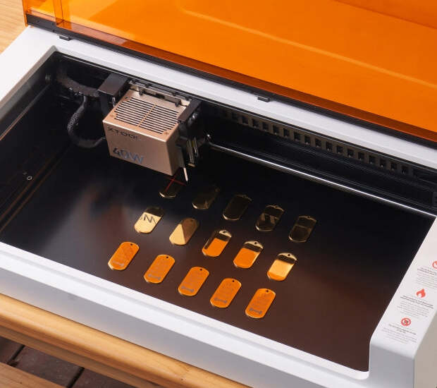 La xTool S1 vous permet de graver en série vos motifs, même sur des pièces aux formes variées, offrant ainsi une flexibilité optimale pour personnaliser rapidement une grande diversité d’objets en une seule opération.